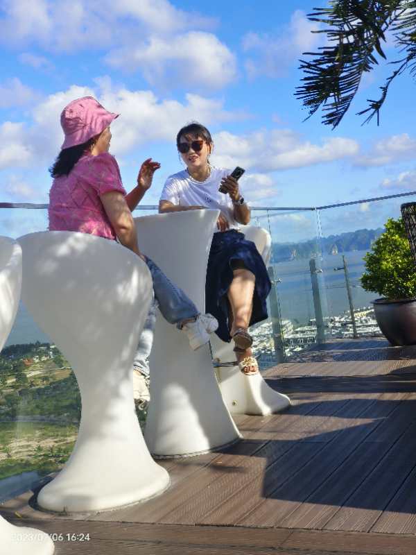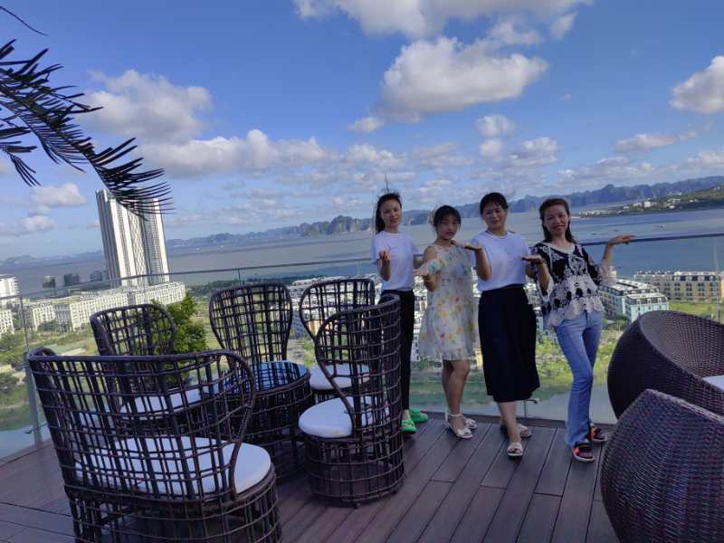 晚上入住的下龍灣五星級(jí)酒店十分豪華,房間布置豪華漂亮,打開窗簾面向大海,更有特色的是樓頂有游泳池、咖啡廳等,可以上去游泳、邊喝咖啡邊靠在椅子上觀看整個(gè)下龍灣的夜景,這也是拍照的絕佳好去處,公司男同事忙著游泳、女同事則忙著合影留念,忙的不亦樂(lè)乎。